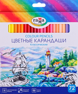Карандаши цветные 72цв. Гамма Классические 210119_02 шестигранные, дерево