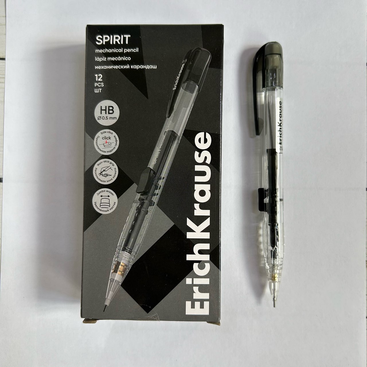 Карандаш автомат 0,5мм ErichKrause Spirit 60752 прозр.пласт.корп.с гориз.подачей грифеля, с ластиком