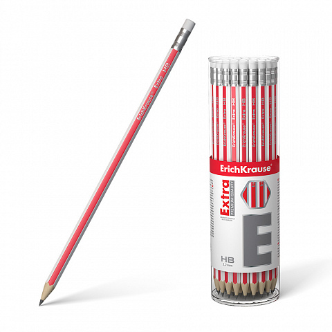 Карандаш с ластиком дерево ErichKrause Extra красно-белый корпус 45488 шестигранный НВ