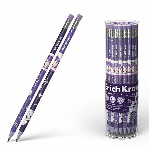 Карандаш с ластиком пластик ErichKrause Space Anime 60709 фиолет.корпус с рисунком, трехгранный НВ