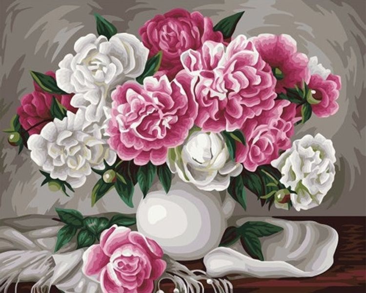 Картина по номерам 40*50см Цветы в белой вазе VA-3455