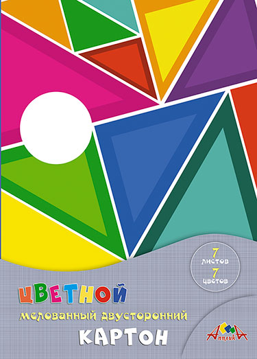 Картон цветной А4 двусторонний 07л.07цв. мелованный (200гр) Цветные треугольники С0260-11 в папке