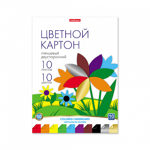 Картон цветной А4 двусторонний 10л.10цв. глянцевый (170гр) Цветочки ErichKrause 58499 в папке