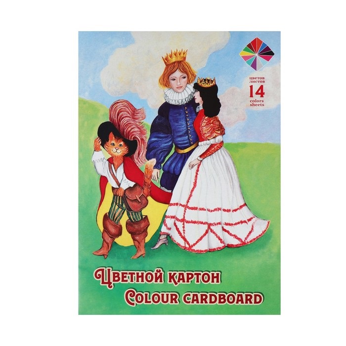 Картон цветной А4 двусторонний 14л.14цв. мелованный (220гр) Кот в сапогах Лилия Холдинг ЦК-5613