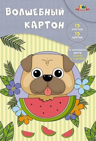 Картон цветной А4 10л.10цв. (золото+серебро) Щенок с арбузом (200гр) в папке С0010-28