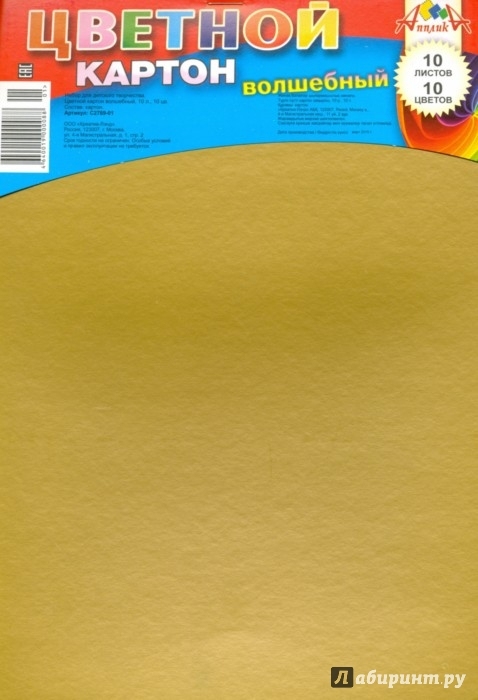 Цветной картон волшебный 10 листов, 10 цветов. Формат А4. Внутренний блок изготовлен: из 2- х листов мелованного картона и 8 листов немелованного картона плотностью 200 гр/м2.