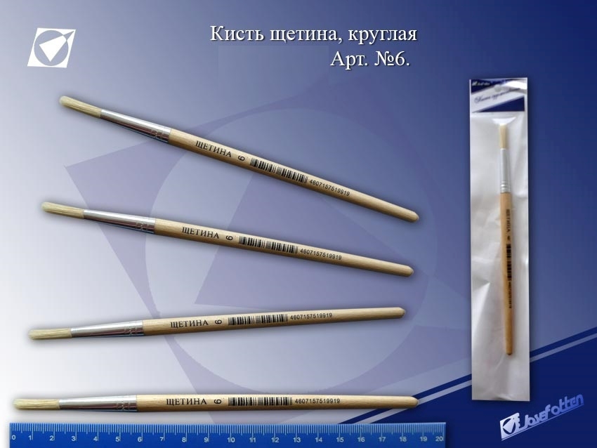 Кисть щетина № 6 круглая, индивидуальная упаковка (Китай) J.Otten