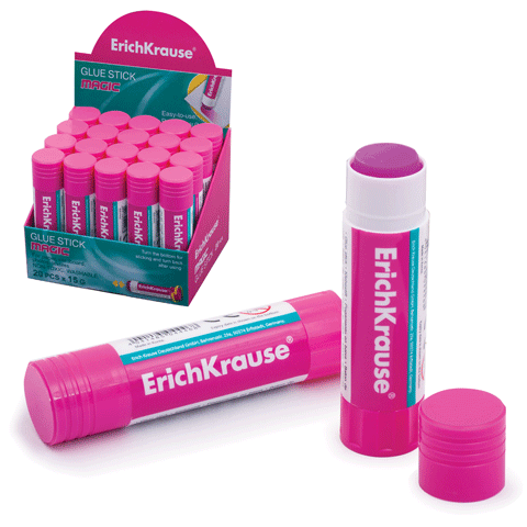 Клей-карандаш с цветным индикатором 15г ErichKrause Magic розовый 4446