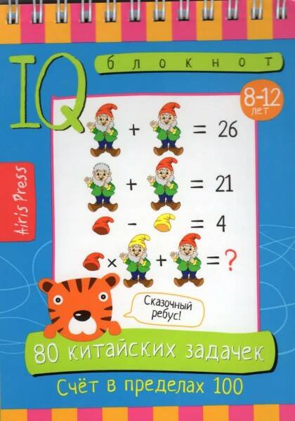 Книга-блокнот IQ А6 спираль 80 китайских задачек. Счет в пределах 100. 8-12лет Айрис 29231 80стр.