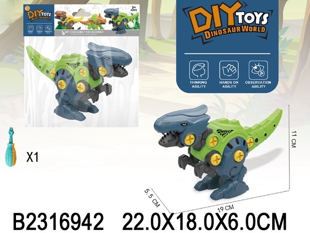 Конструктор на шурупах пластик Динозавр с отверткой 20см в пакете 2316942 quantity