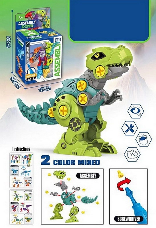 Конструктор на шурупах пластик Динозавр с отверткой, в коробке Y24937011 quantity