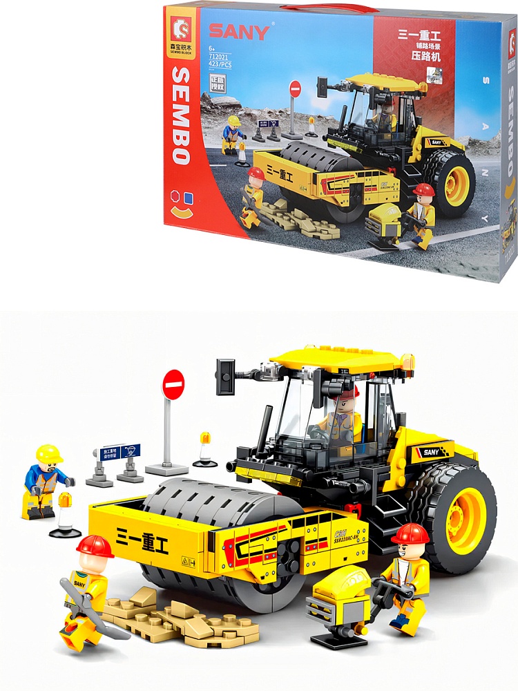 Конструктор пластик 423 детали Дорожный каток Sembo 712021SM