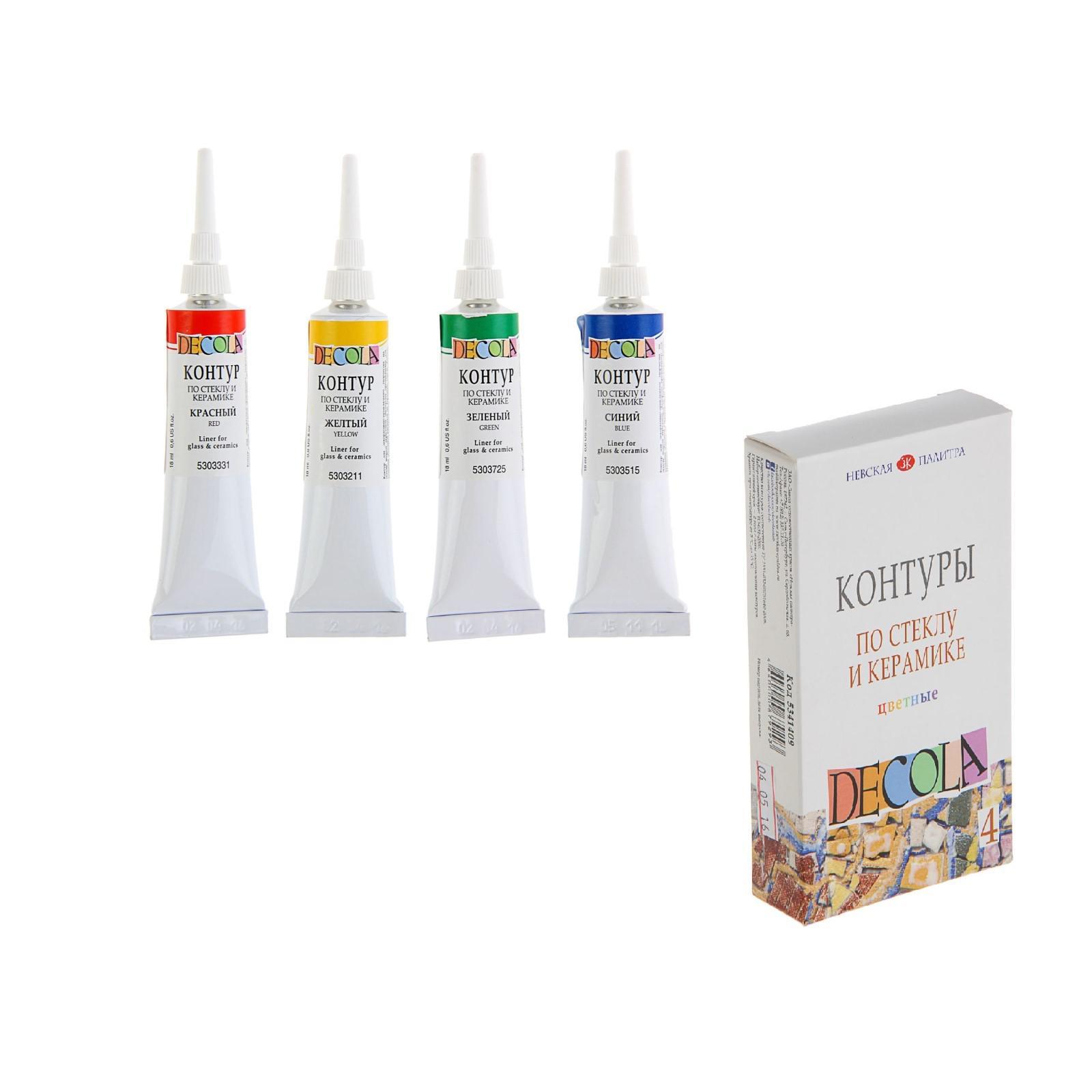 Контуры по стеклу и керамике 04цв. акрил Декола цветные (в тубах по 18мл) ЗХК (желт,красн,син,зел)