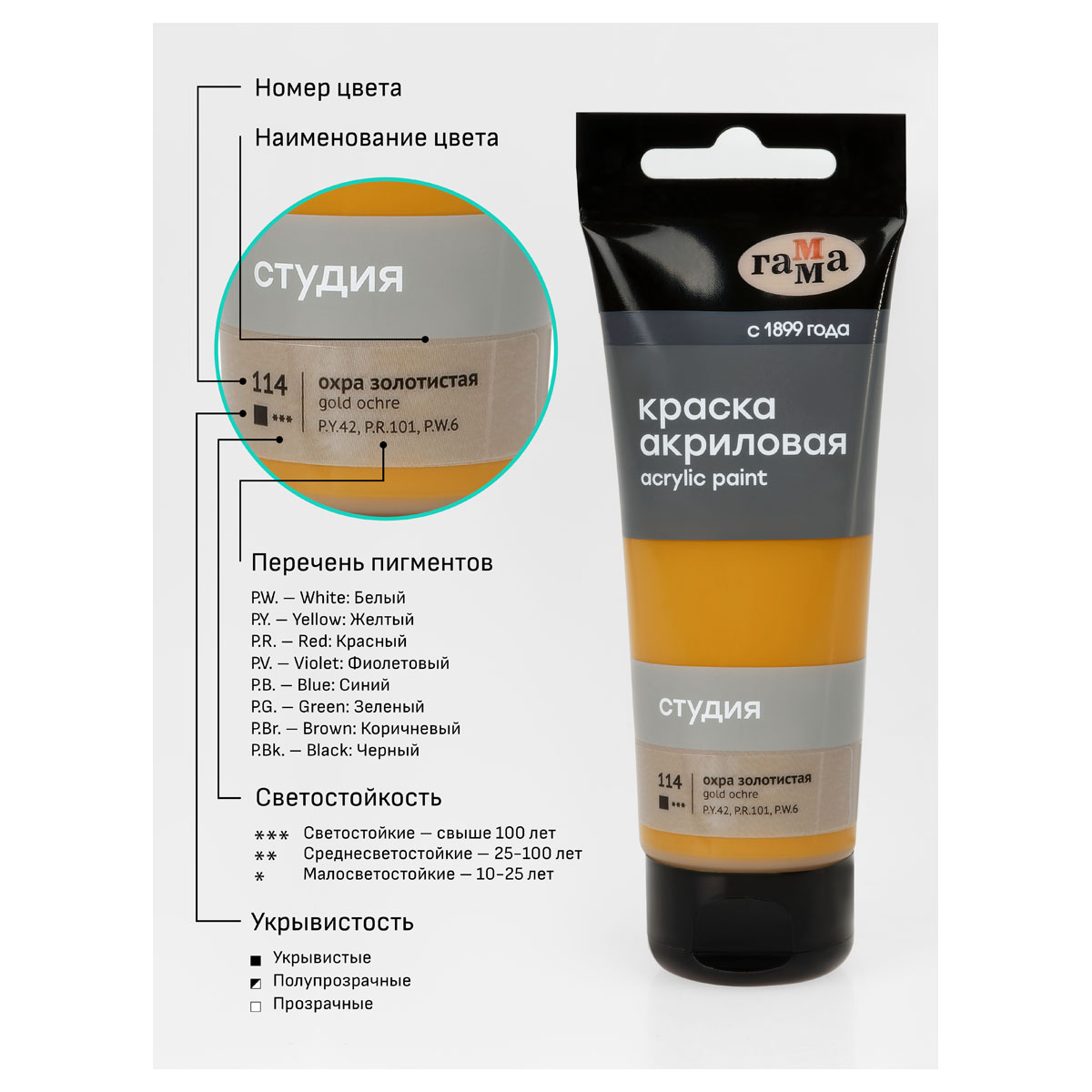 Краска акрил художественный Гамма туба 75мл охра золотистая 280220114