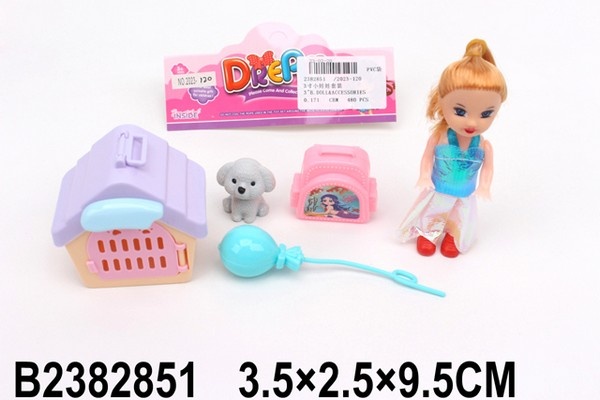 Кукла 10см с собачкой, переноской и воздушным шаром, в пакете 2382851 quantity