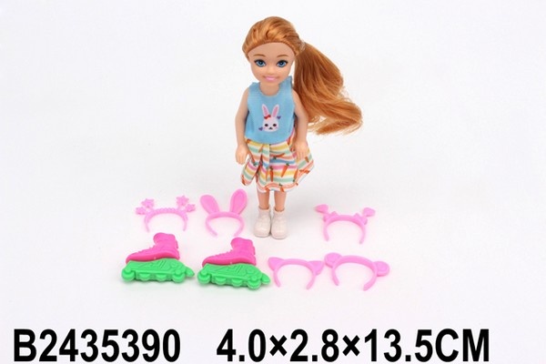 Кукла 14см с чемоданом/на роликовых коньках и аксессуарами, в пакете 2435390