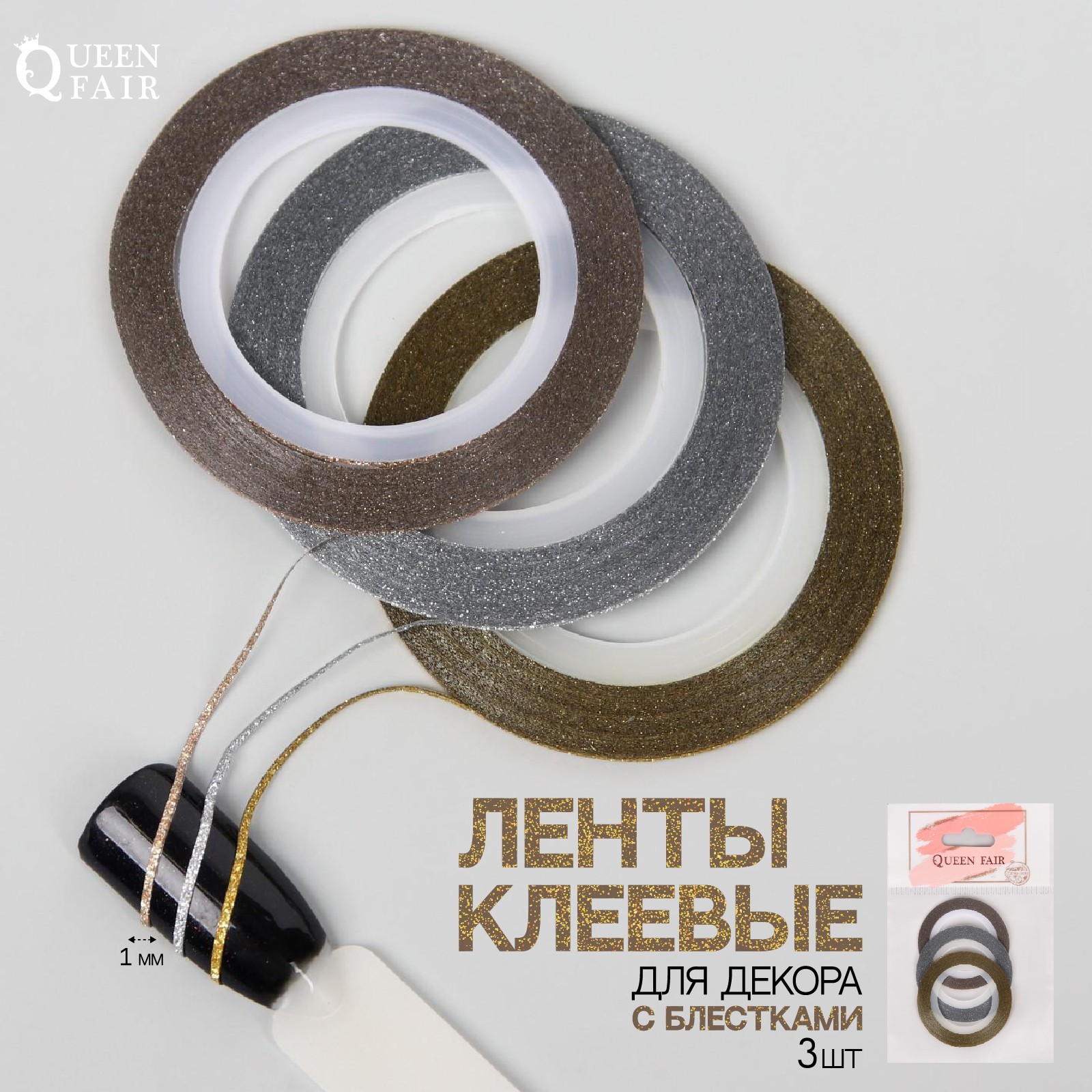 Лента для декора клеевая 1мм/18м Блестки Бронза/Серебро/Золото (набор 3шт) в пакете 3949642