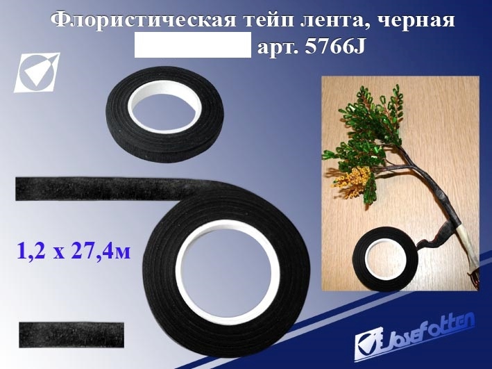 Лента клейкая флористическая (тейп-лента) черная 12мм*27,4м J.Otten 5766-10J