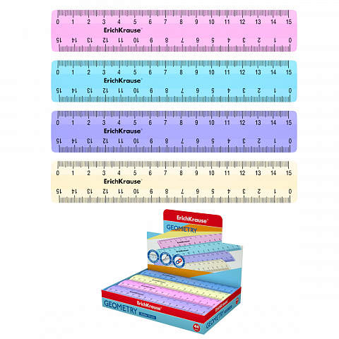 Линейка пластик 15см пастель (4 цвета) Pastel 49541 ErichKrause двухсторонняя шкала