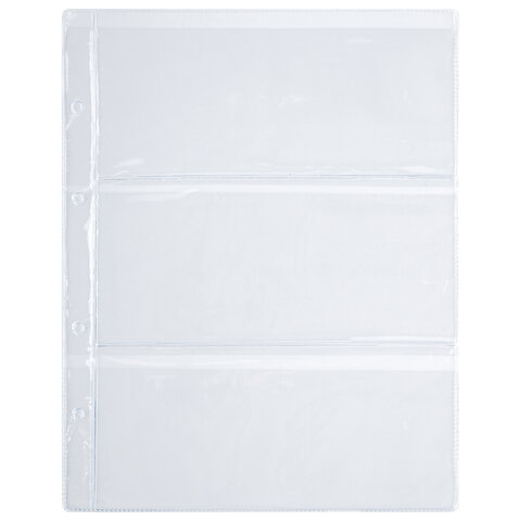 Лист для купюр (200*250мм) на 3 ячейки 18*8см ПВХ прозрачная STAFF (1/10шт цена за 1шт) 238082