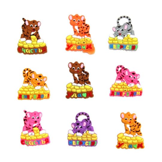 Магнит резина Тигренок с деньгами и пожеланием 5см, ассорти Р-2