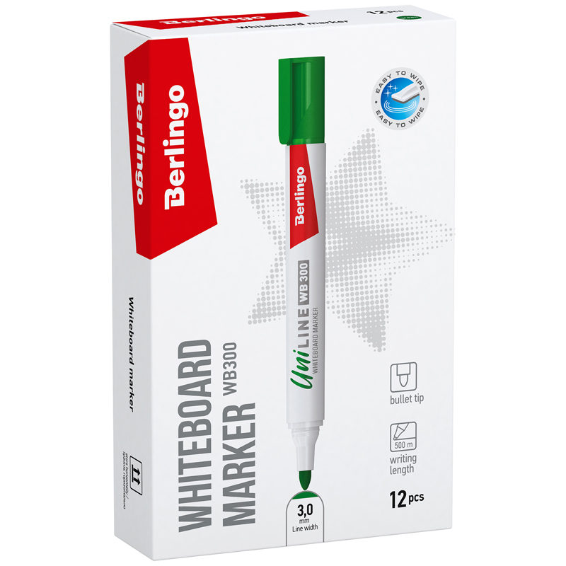 Маркер для доски круглый 3 мм зеленый UniLine WB300 Berlingo PM6411