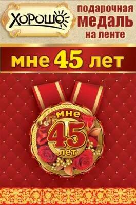 Медаль металл на ленте Мне 45 лет 5,6см цвет красный на блистере 15.11.00129 quantity