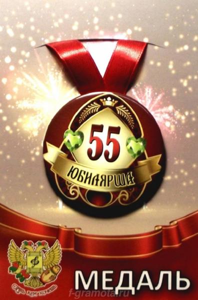 Медаль металл на ленте Юбилярша 55лет 7,5см ZMET00013/5654