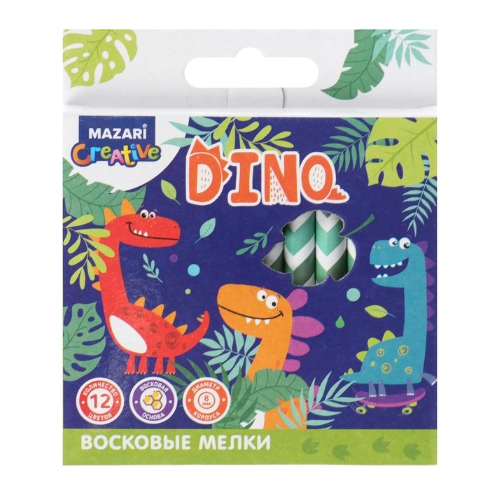 Мелки восковые 12цв. Mazari Dino M-6383-12 круглые, длина 89мм, толщина 8мм quantity