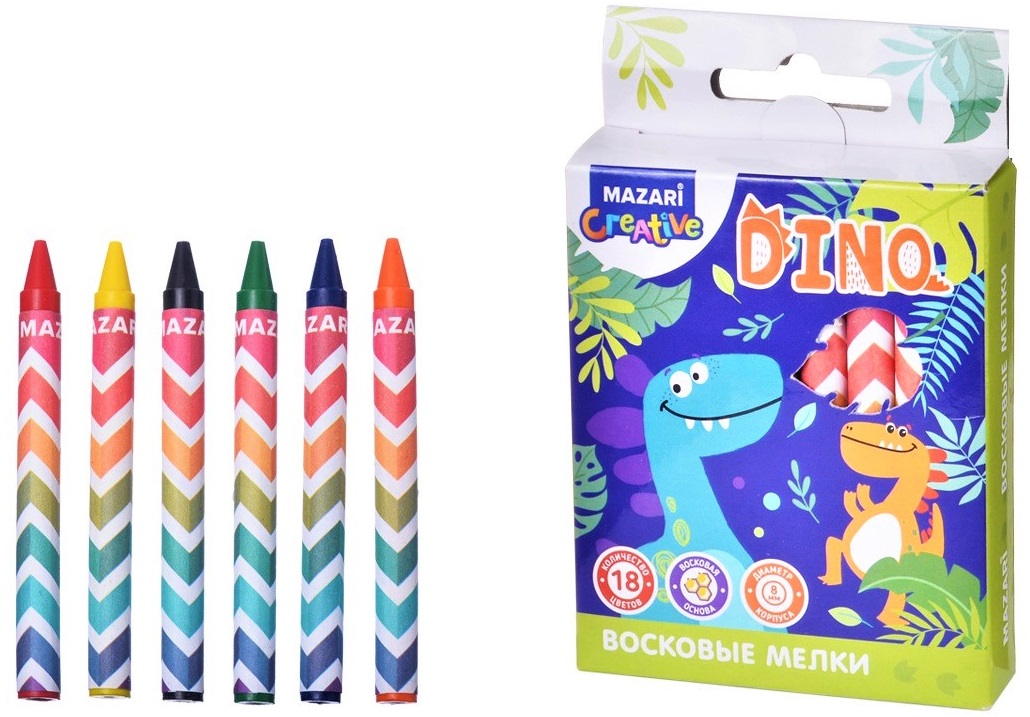 Мелки восковые 18цв. Mazari Dino круглые M-6383-18 длина 89мм, толщина 8мм