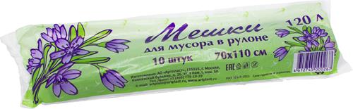 Мешки для мусора 120л (10шт) 40мк 70*110см черные, в рулоне Артпласт quantity