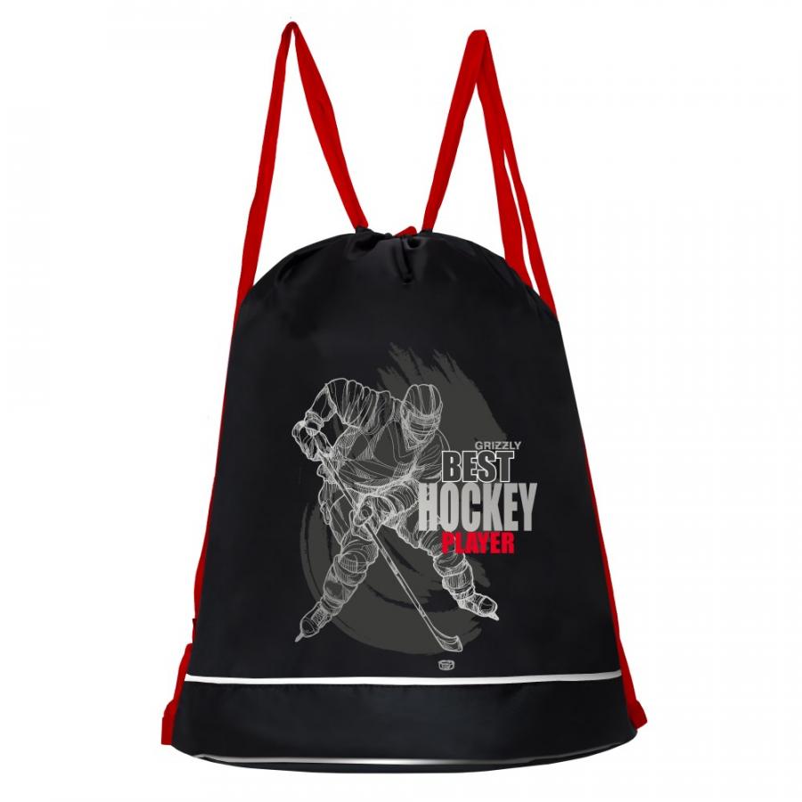 Мешок для обуви 38*50см 2-отделения с рисунком Хоккей, черный Grizzly OM-11-9 прочный нейлон
