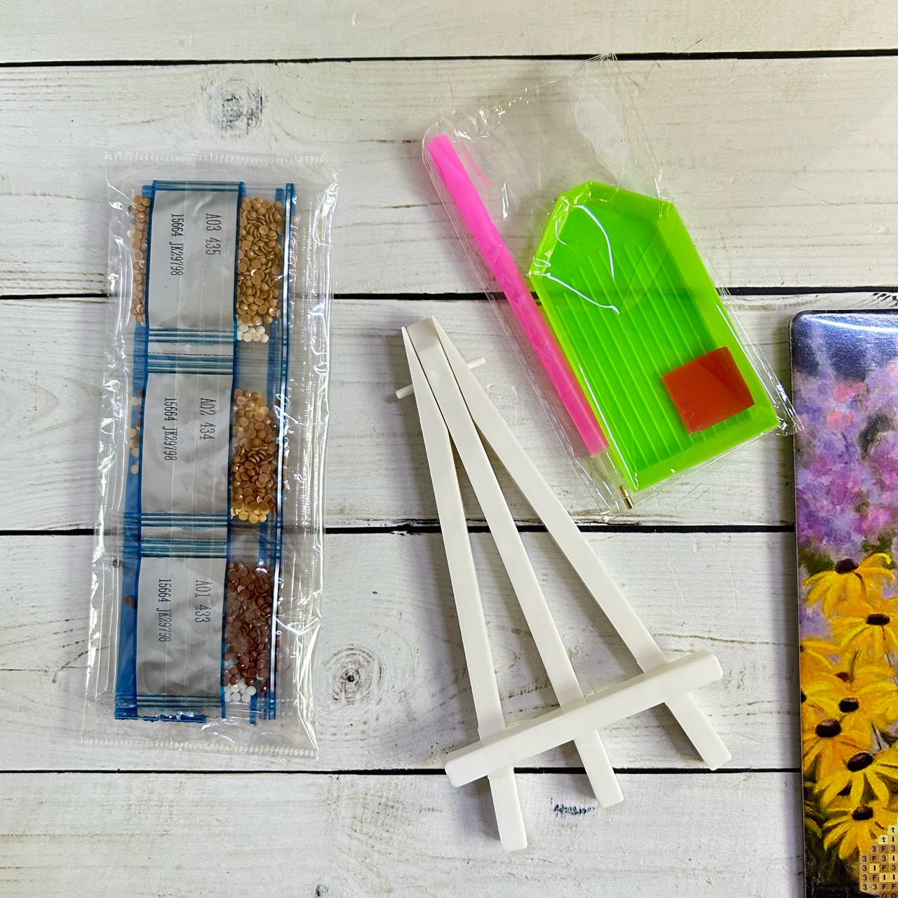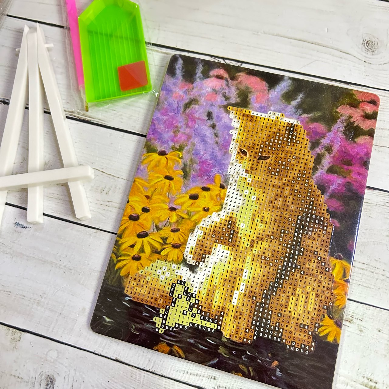 Мозаика алмазная частичная выкладка 15*20см Котенок и бабочка (на картоне) + подставка 29798