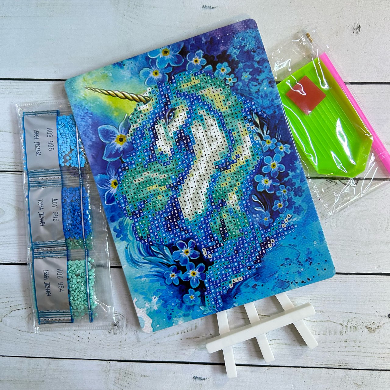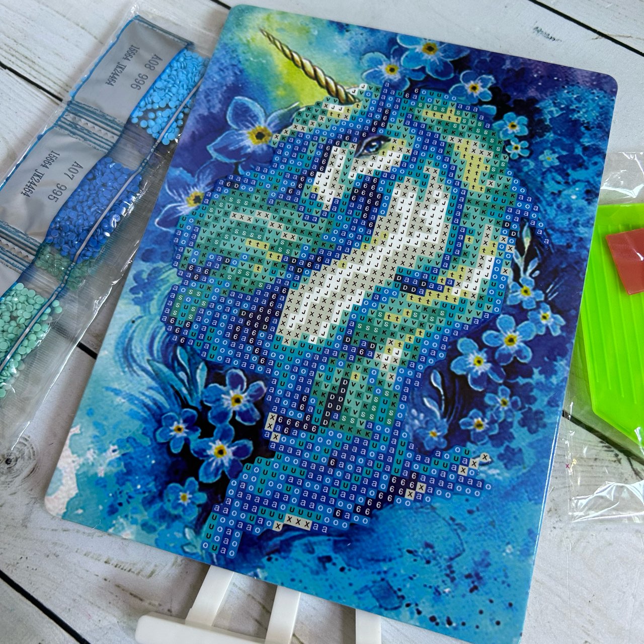 Мозаика алмазная частичная выкладка 15*20см Единорог на голубом фоне (на картоне) + подставка 24464