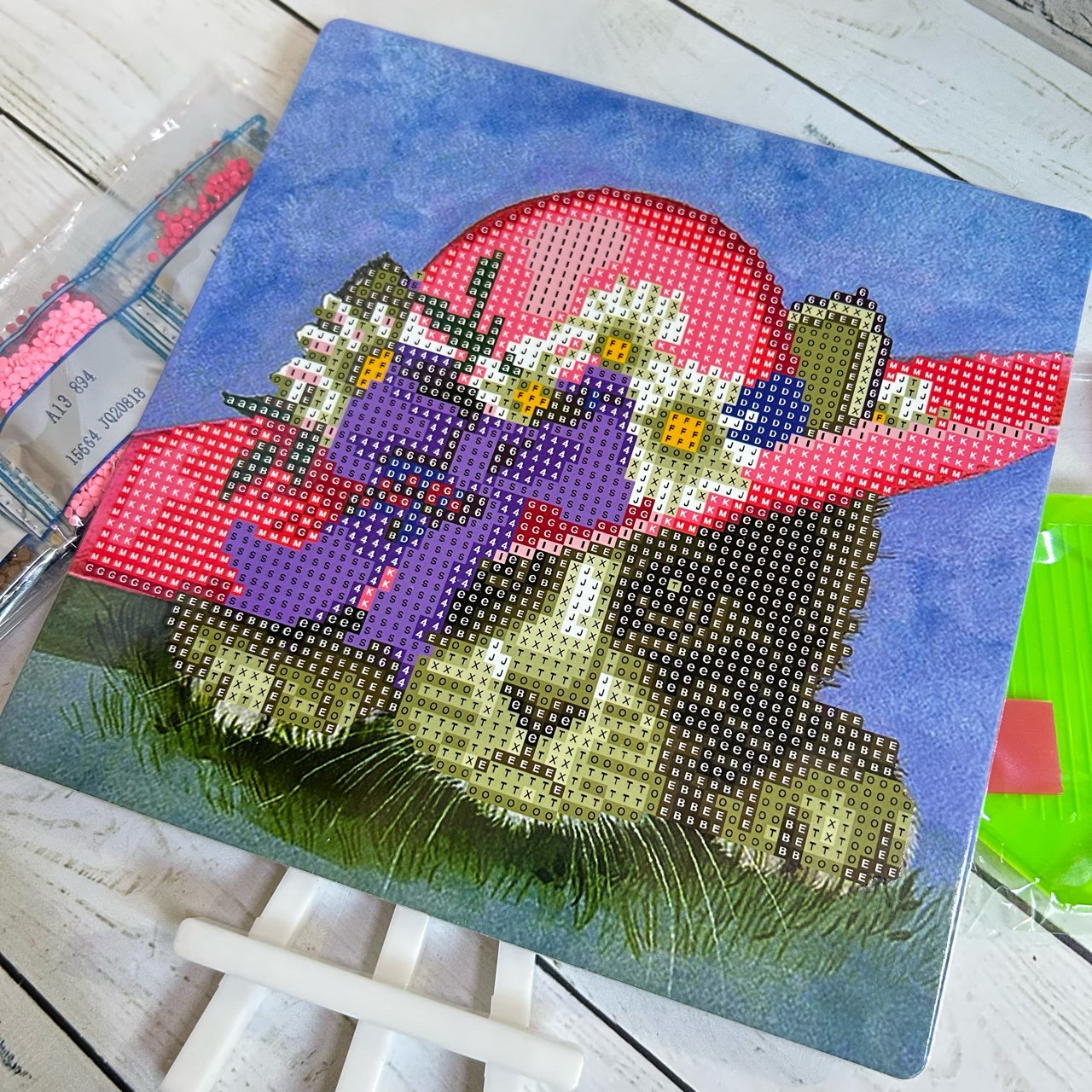 Мозаика алмазная частичная выкладка 20*20см Котенок в шляпе (на картоне) + подставка 20818