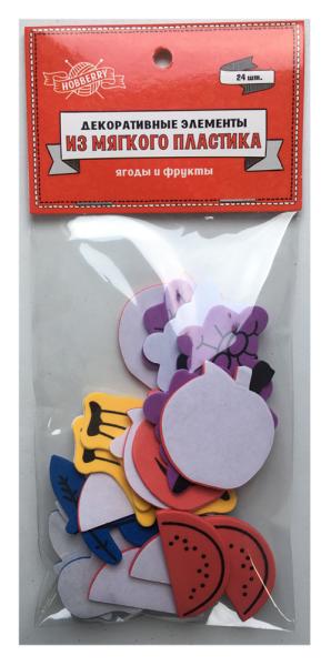 Набор для декорирования Ягоды и фрукты из мягкого пластика (набор 24шт) ТХ-9147 самокл.