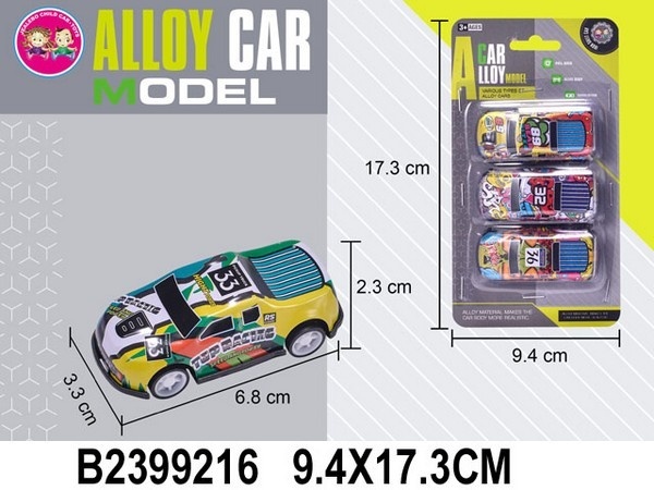 Набор машин металл 3шт Спортивное авто 7см в блистере 2399216