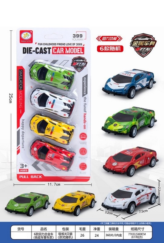 Набор машин металл 4шт 7см Car Model Спецслужба в блистере Y8907384 quantity