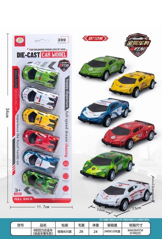 Набор машин металл 6шт 7см Car Model Спецслужба в блистере Y8907385 quantity