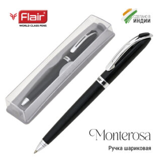 Ручка подарочная в футляре Flair Monterosa синяя 1,0мм F-1001 черный металл.корпус с хромом, поворот
