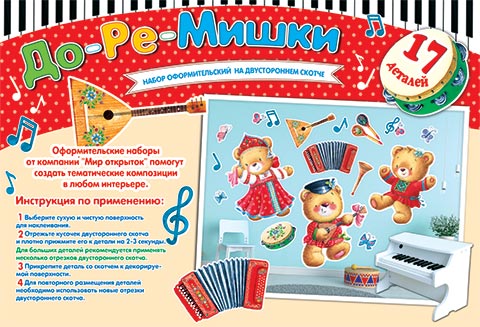 Наклейка декоративная на скотче До-Ре-Мишки (набор 17 наклеек) 9-65-008