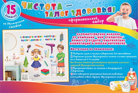 Наклейка декоративная на скотче Чистота-залог здоровья! (набор 15 наклеек) 9-65-011