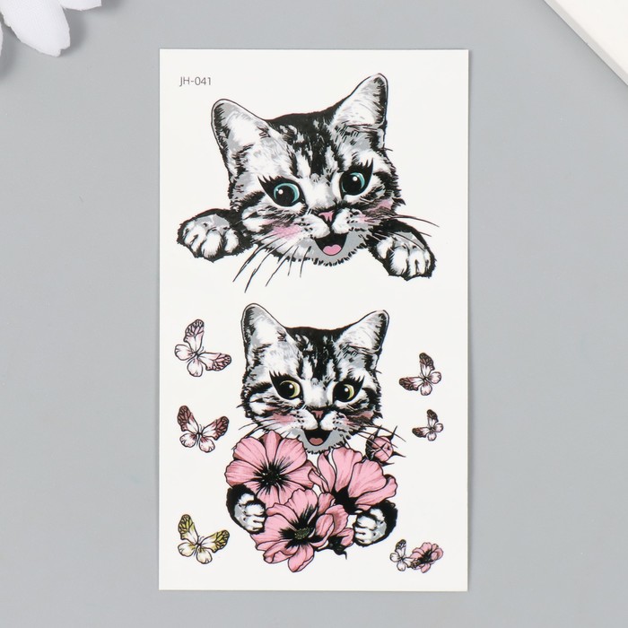 Наклейка тату для тела 10,5*6см Кошечки с цветами и бабочками цветная 9501735 quantity