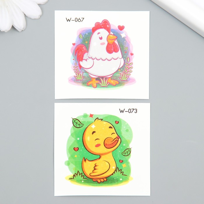 Наклейка тату для тела 6*6см Петушок/Утенок цветная 9690980