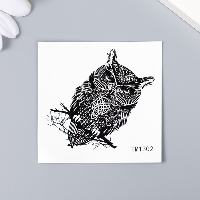 Наклейка тату для тела 6*6см Темный филин черная 9323526 quantity