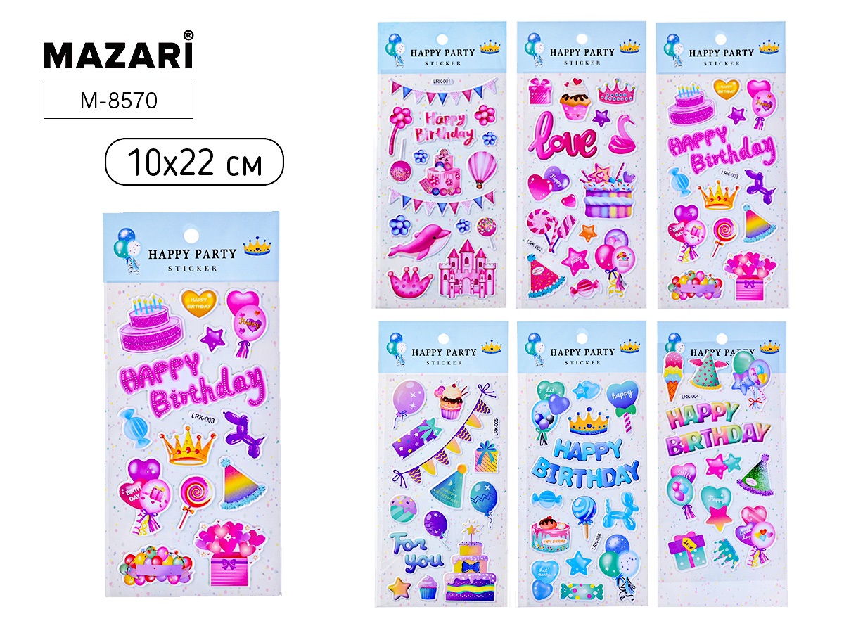 Наклейки объемные 10*22см Праздник (6 видов) M-8570