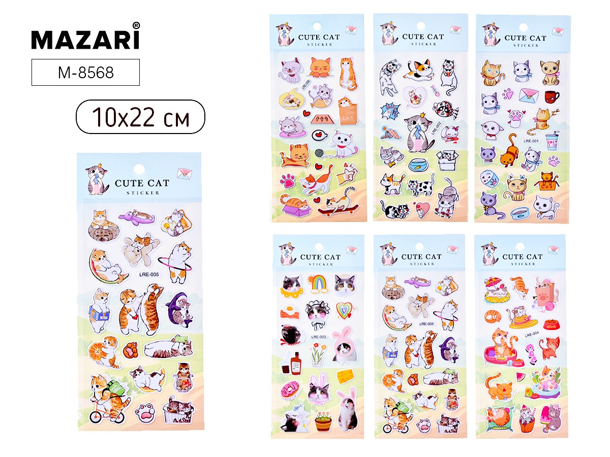 Наклейки объемные 18*9,5см Котики (6 видов) M-8568