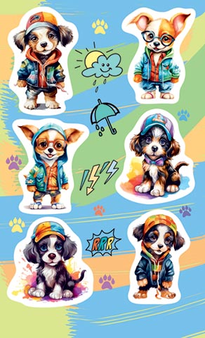 Наклейки 16*10см Собачки в кепках 0-11-744