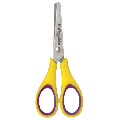 Ножницы для левшей 125мм желто-фиолетовые, резиновые вставки Юнландия 236783