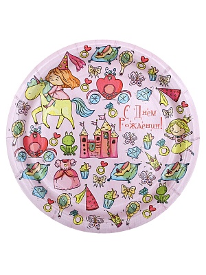 Одноразовая ТАРЕЛКА детская 170мм бумажная Мечты принцессы (набор 6шт) ФЛ-8257